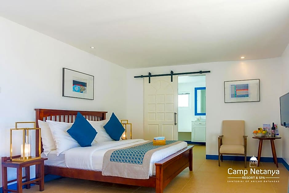 This suite features a Santorini-inspired decor. Suite includes a King-sized bed, a flat-screen cable TV, mini-bar and private bathroom. Additional benefits: - 1 hour kayaking and 1 hour snorkeling (with free gears and accessories)